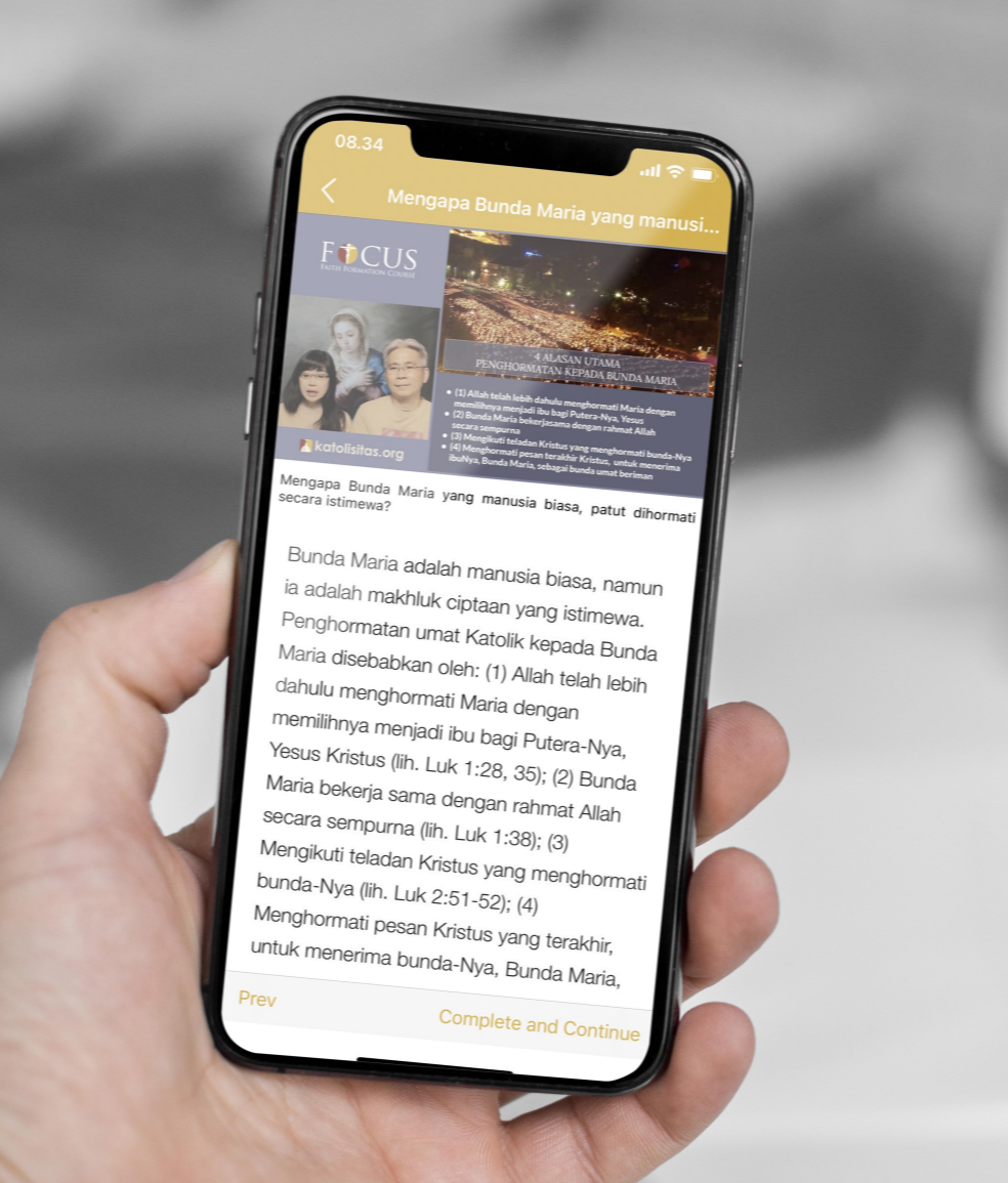 Materi mencakup keseluruhan iman Katolik, mulai dari kredo, sakramen, moralitas, doa. Semuanya disajikan dalam bentuk video, text, dan juga presentasi.